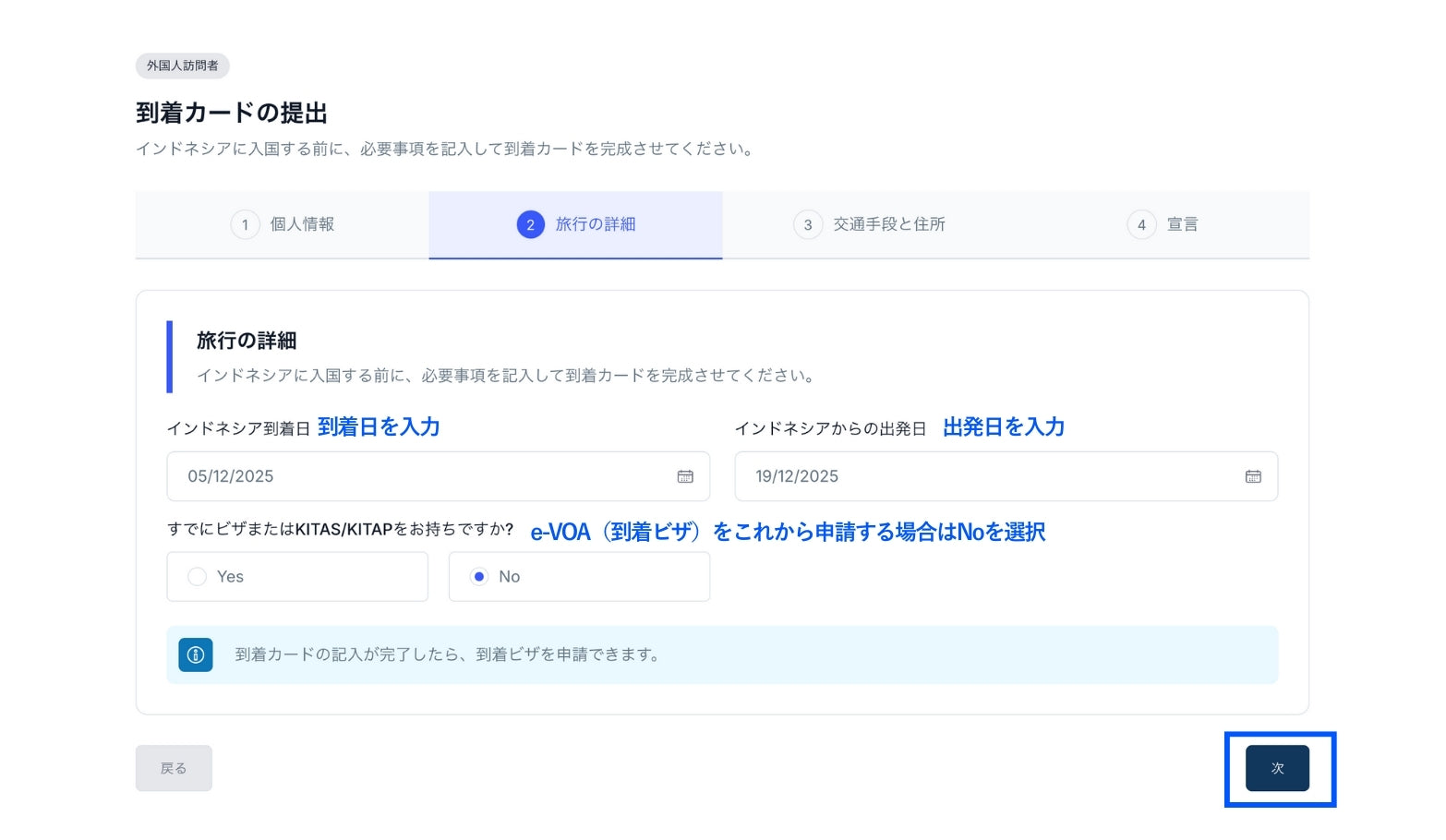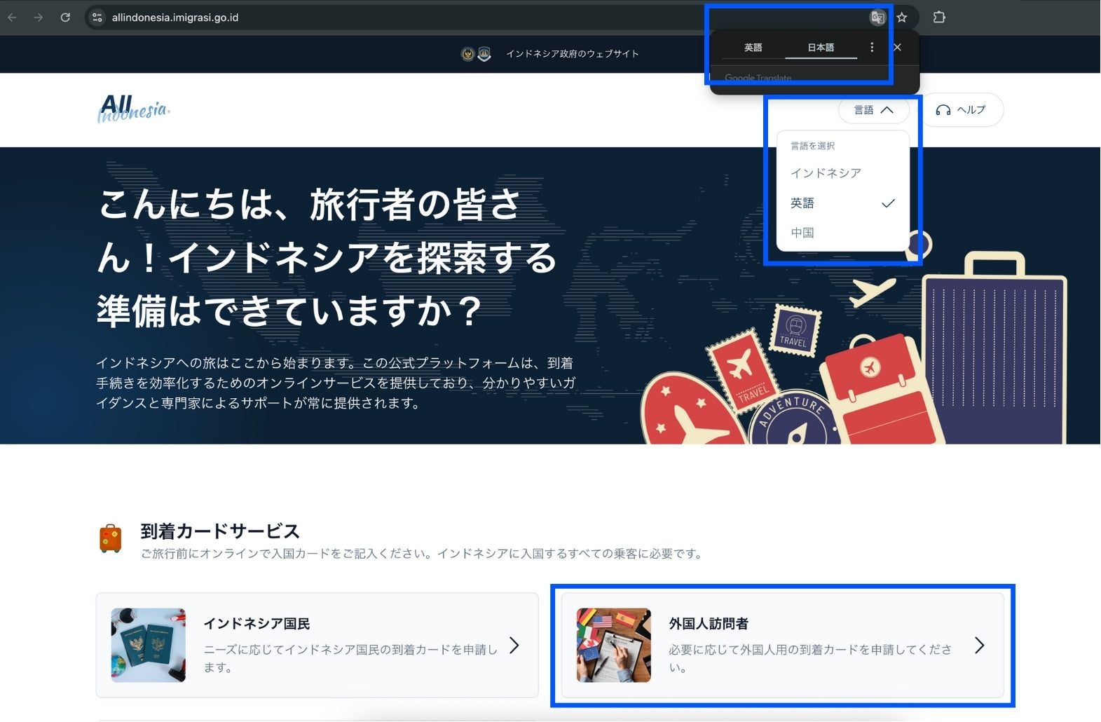 最近では All Indonesia の登録フローからそのまま e-VOA の申請画面へ進めるようになりました。