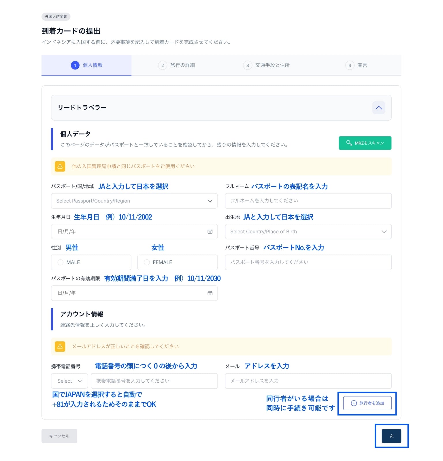 ・インドネシア入国に必要な 税関申告・健康申告・滞在情報を一括登録するデジタル到着カード